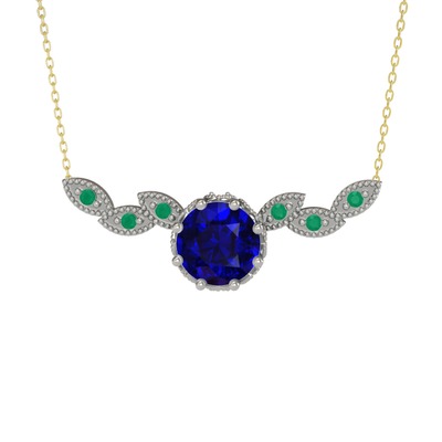 Lab safir ve kök zümrüt 18 ayar beyaz altın kolye (40 cm gümüş rolo zincir)