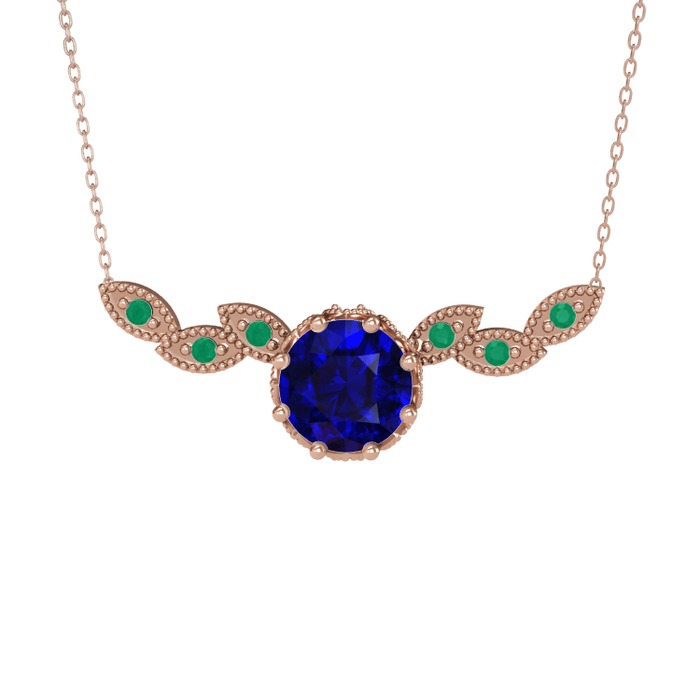 Lab safir ve kök zümrüt 8 ayar rose altın kolye (40 cm rose altın rolo zincir)