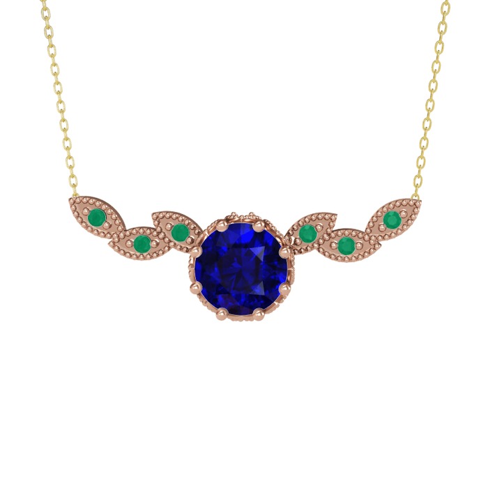 Lab safir ve kök zümrüt 925 ayar rose altın kaplama gümüş kolye (40 cm altın rolo zincir)