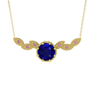 Lab safir ve pembe kuvars 8 ayar altın kolye (40 cm altın rolo zincir)