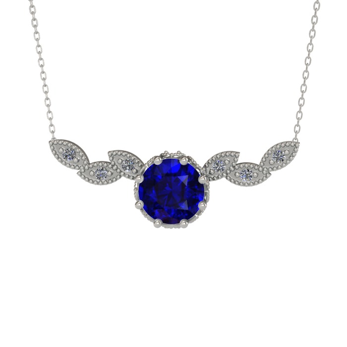 Lab safir ve pırlanta 14 ayar beyaz altın kolye (0.12 karat, 40 cm beyaz altın rolo zincir)