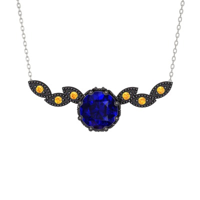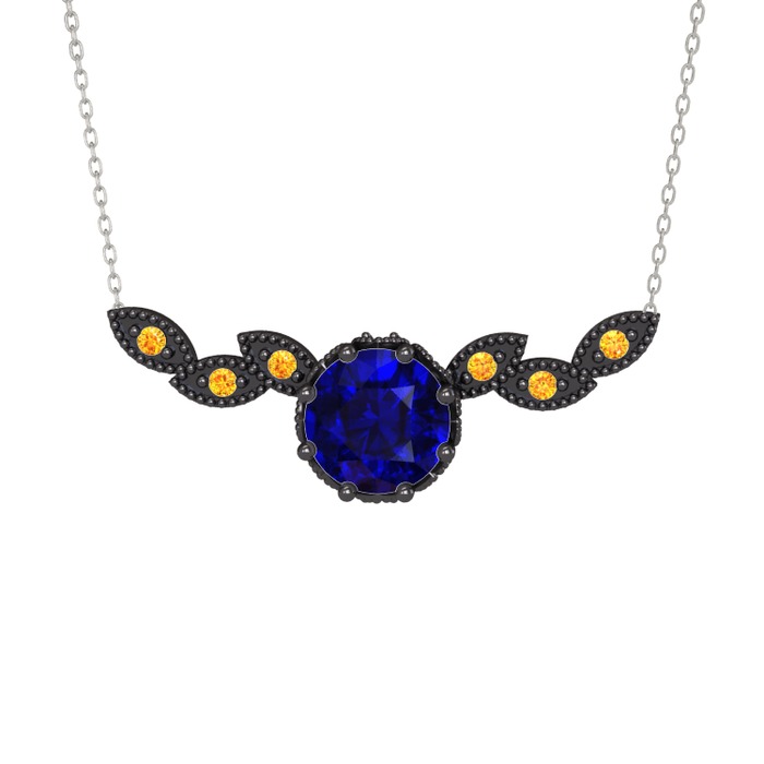 Lab safir ve sitrin 925 ayar siyah rodyum kaplama gümüş kolye (40 cm beyaz altın rolo zincir)