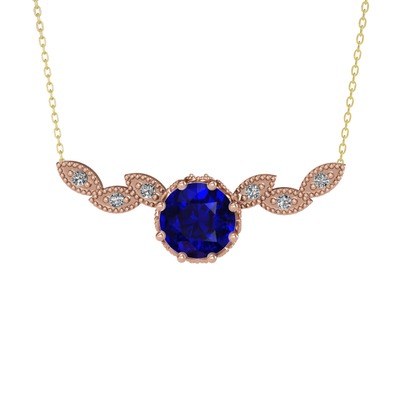 Lab safir ve swarovski 8 ayar rose altın kolye (40 cm altın rolo zincir)