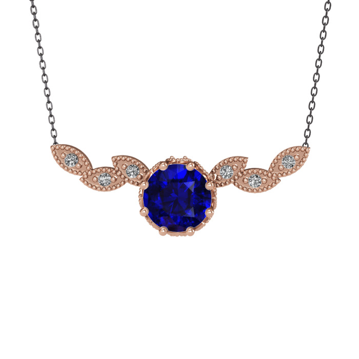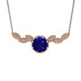 Lab safir ve swarovski 8 ayar rose altın kolye (40 cm gümüş rolo zincir)