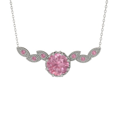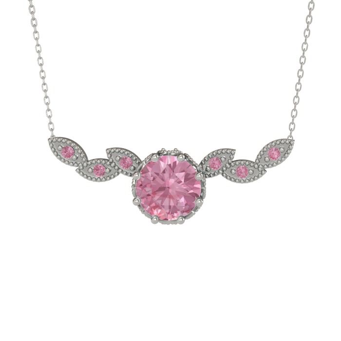Pembe kuvars 18 ayar beyaz altın kolye (40 cm gümüş rolo zincir)