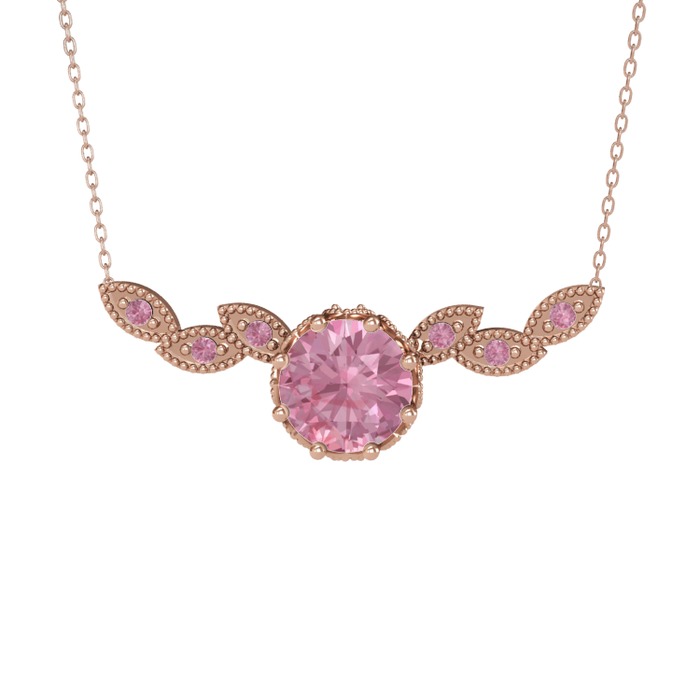 Pembe kuvars 18 ayar rose altın kolye (40 cm rose altın rolo zincir)
