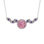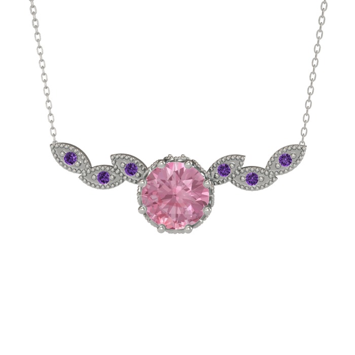 Pembe kuvars ve ametist 14 ayar beyaz altın kolye (40 cm gümüş rolo zincir)