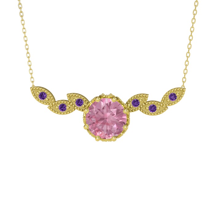 Pembe kuvars ve ametist 925 ayar altın kaplama gümüş kolye (40 cm altın rolo zincir)