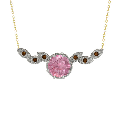 Pembe kuvars ve dumanlı kuvars 925 ayar gümüş kolye (40 cm altın rolo zincir)
