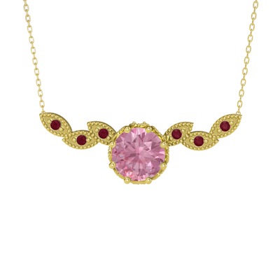Pembe kuvars ve kök yakut 8 ayar altın kolye (40 cm gümüş rolo zincir)