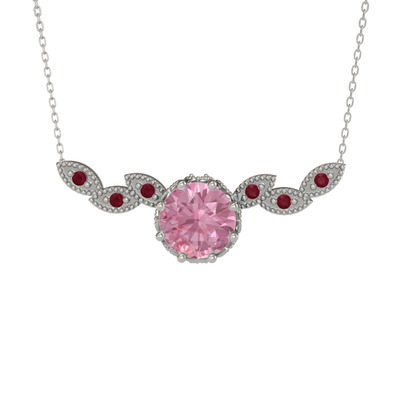 Pembe kuvars ve kök yakut 925 ayar gümüş kolye (40 cm beyaz altın rolo zincir)