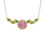 Pembe kuvars ve kök zümrüt 925 ayar altın kaplama gümüş kolye (40 cm gümüş rolo zincir)