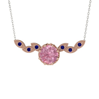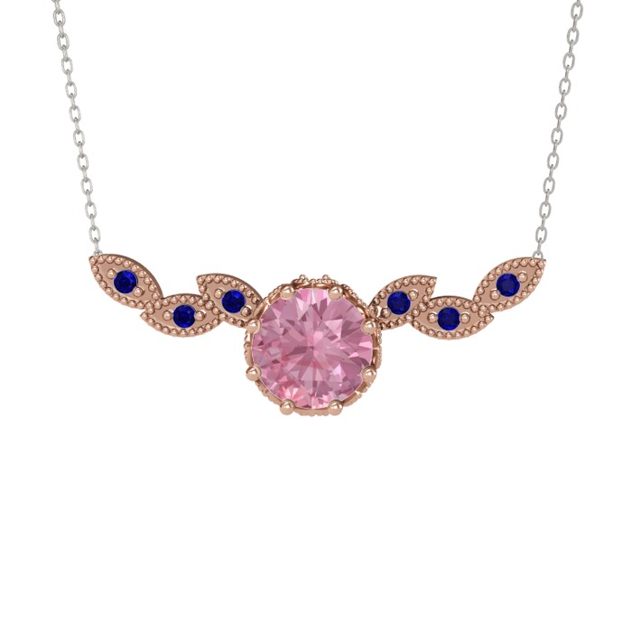 Pembe kuvars ve lab safir 14 ayar rose altın kolye (40 cm gümüş rolo zincir)