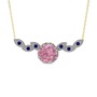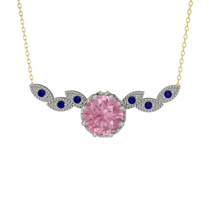 Pembe kuvars ve lab safir 18 ayar beyaz altın kolye (40 cm gümüş rolo zincir)