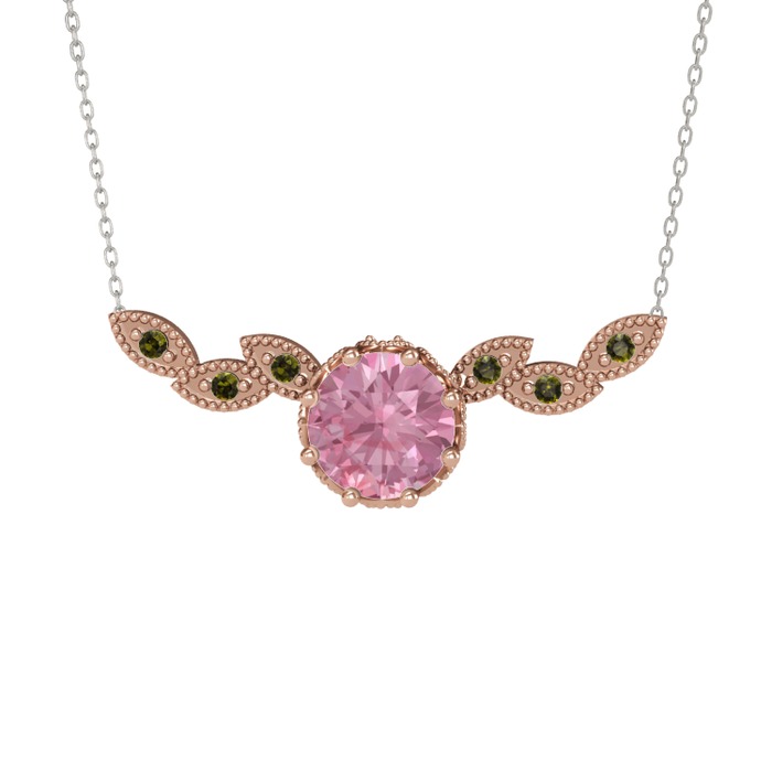 Pembe kuvars ve peridot 925 ayar rose altın kaplama gümüş kolye (40 cm beyaz altın rolo zincir)