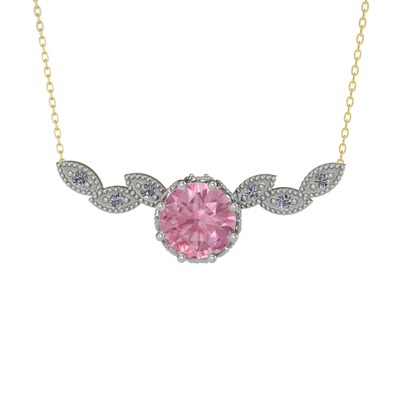 Pembe kuvars ve pırlanta 14 ayar beyaz altın kolye (0.12 karat, 40 cm altın rolo zincir)