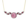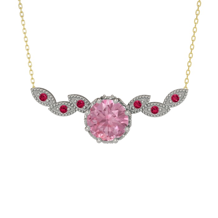 Pembe kuvars ve rodolit garnet 18 ayar beyaz altın kolye (40 cm altın rolo zincir)