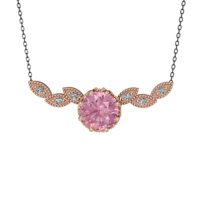 Pembe kuvars ve swarovski 18 ayar rose altın kolye (40 cm gümüş rolo zincir)