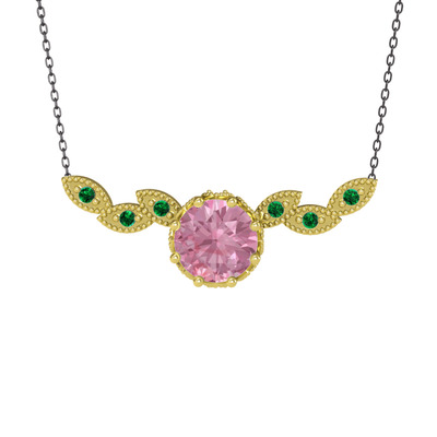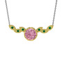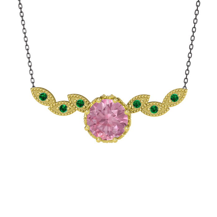 Pembe kuvars ve yeşil kuvars 14 ayar altın kolye (40 cm gümüş rolo zincir)