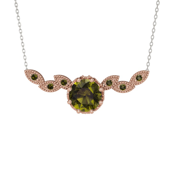 Peridot 14 ayar rose altın kolye (40 cm beyaz altın rolo zincir)