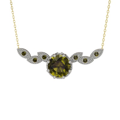 Peridot 18 ayar beyaz altın kolye (40 cm gümüş rolo zincir)