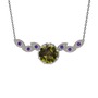 Peridot ve ametist 8 ayar beyaz altın kolye (40 cm gümüş rolo zincir)