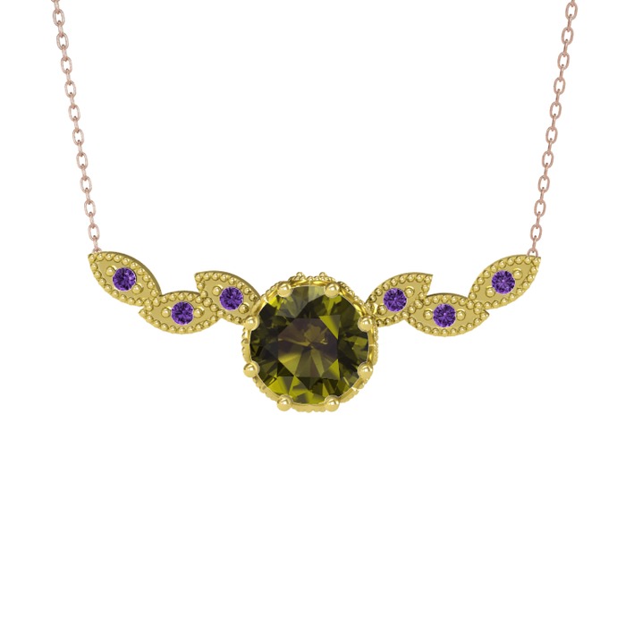 Peridot ve ametist 925 ayar altın kaplama gümüş kolye (40 cm rose altın rolo zincir)