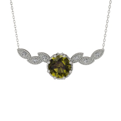 Peridot ve beyaz zirkon 8 ayar beyaz altın kolye (40 cm beyaz altın rolo zincir)