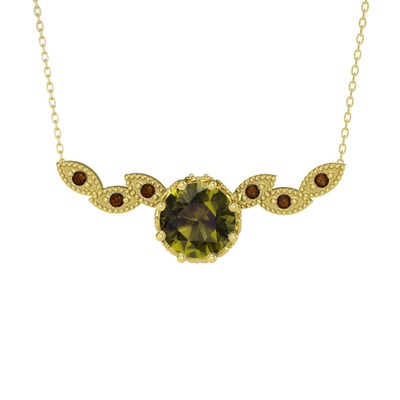 Peridot ve dumanlı kuvars 18 ayar altın kolye (40 cm altın rolo zincir)
