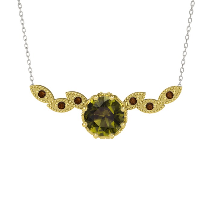 Peridot ve dumanlı kuvars 18 ayar altın kolye (40 cm beyaz altın rolo zincir)