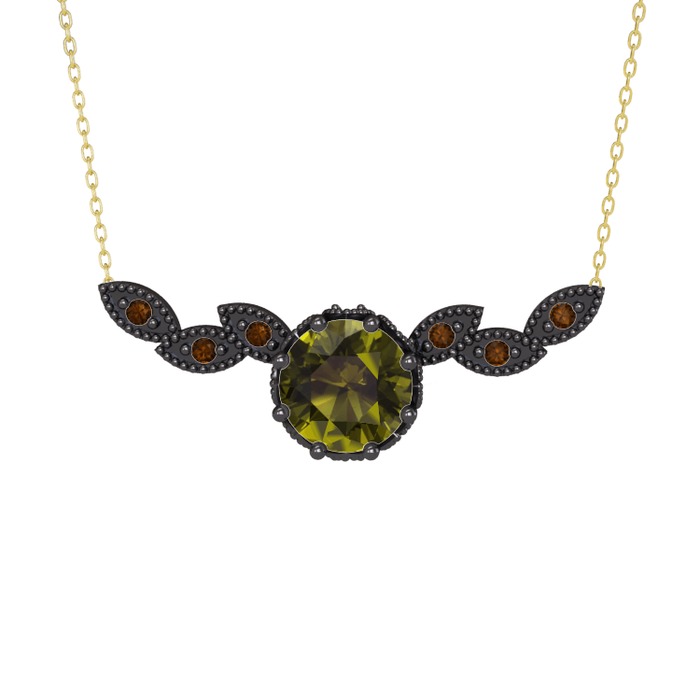 Peridot ve dumanlı kuvars 925 ayar siyah rodyum kaplama gümüş kolye (40 cm altın rolo zincir)