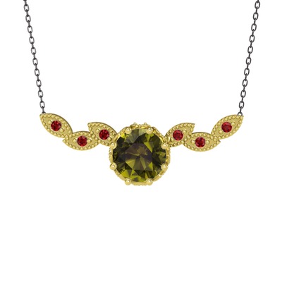 Peridot ve garnet 14 ayar altın kolye (40 cm gümüş rolo zincir)