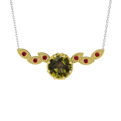 Peridot ve garnet 8 ayar altın kolye (40 cm beyaz altın rolo zincir)
