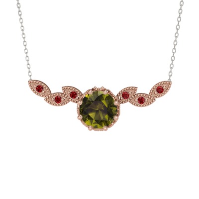 Peridot ve garnet 8 ayar rose altın kolye (40 cm beyaz altın rolo zincir)