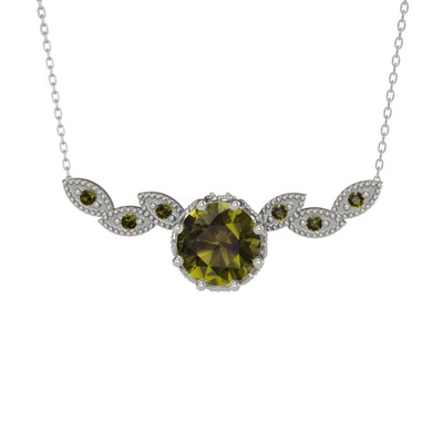 Peridot 925 ayar gümüş kolye (40 cm beyaz altın rolo zincir)