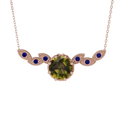 Peridot ve lab safir 925 ayar rose altın kaplama gümüş kolye (40 cm rose altın rolo zincir)