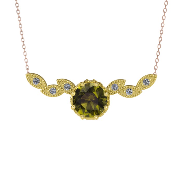 Peridot ve pırlanta 14 ayar altın kolye (0.12 karat, 40 cm rose altın rolo zincir)