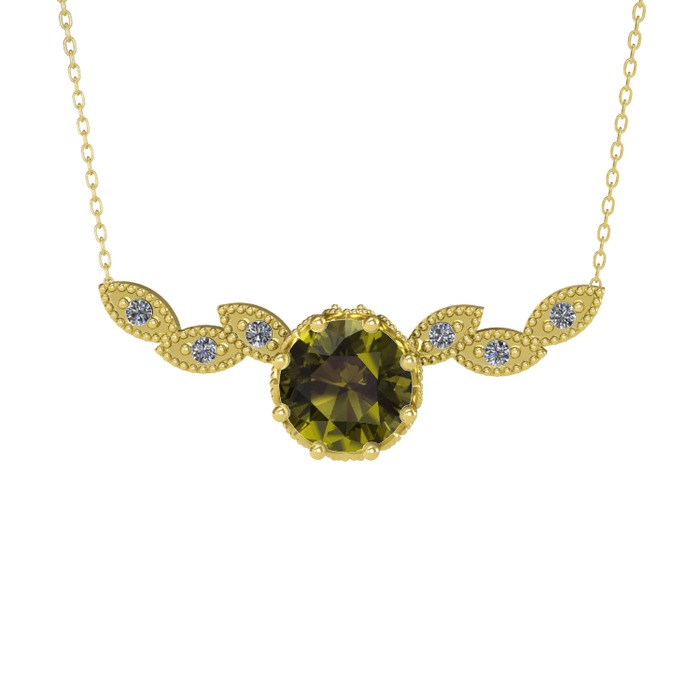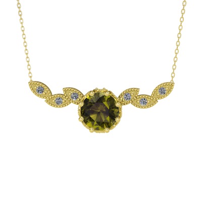 Peridot ve pırlanta 8 ayar altın kolye (0.12 karat, 40 cm gümüş rolo zincir)