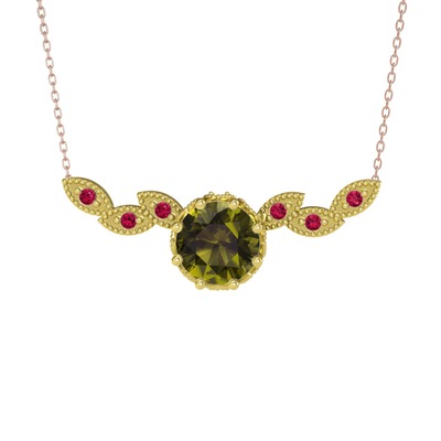 Peridot ve rodolit garnet 18 ayar altın kolye (40 cm rose altın rolo zincir)