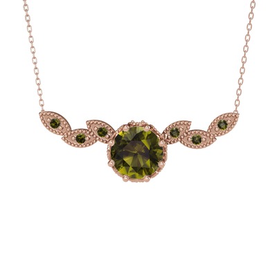 Peridot 925 ayar rose altın kaplama gümüş kolye (40 cm rose altın rolo zincir)