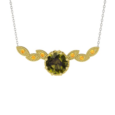 Peridot ve sitrin 18 ayar altın kolye (40 cm beyaz altın rolo zincir)