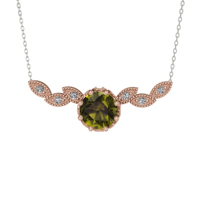 Peridot ve swarovski 925 ayar rose altın kaplama gümüş kolye (40 cm gümüş rolo zincir)