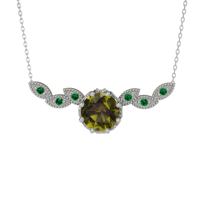 Peridot ve yeşil kuvars 14 ayar beyaz altın kolye (40 cm beyaz altın rolo zincir)