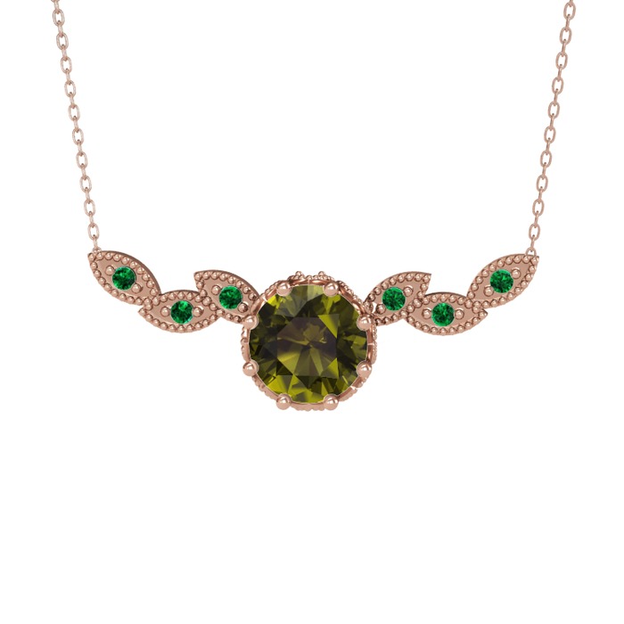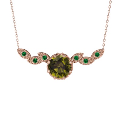 Peridot ve yeşil kuvars 8 ayar rose altın kolye (40 cm rose altın rolo zincir)