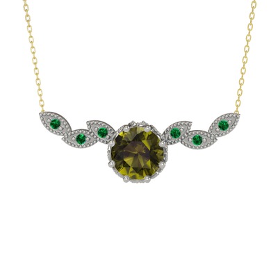 Peridot ve yeşil kuvars 925 ayar gümüş kolye (40 cm altın rolo zincir)