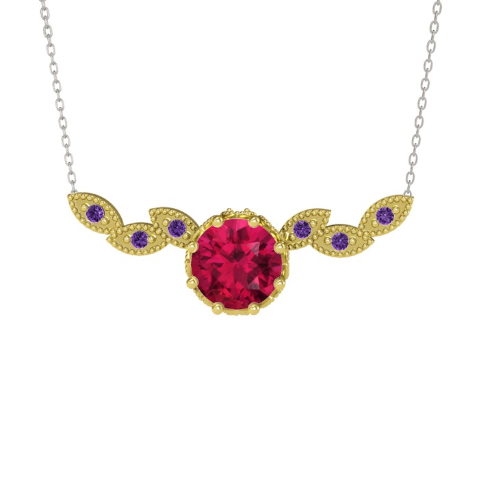 Rodolit garnet ve ametist 14 ayar altın kolye (40 cm beyaz altın rolo zincir)