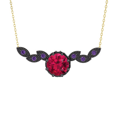 Rodolit garnet ve ametist 925 ayar siyah rodyum kaplama gümüş kolye (40 cm gümüş rolo zincir)