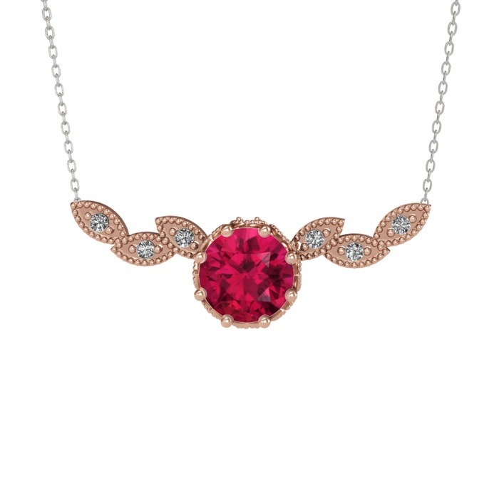 Rodolit garnet ve beyaz zirkon 925 ayar rose altın kaplama gümüş kolye (40 cm beyaz altın rolo zincir)