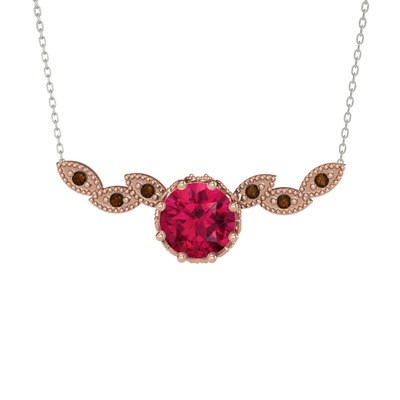 Rodolit garnet ve dumanlı kuvars 925 ayar rose altın kaplama gümüş kolye (40 cm beyaz altın rolo zincir)
