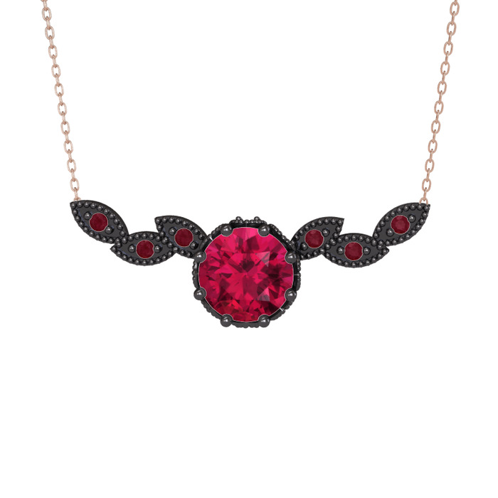 Rodolit garnet ve kök yakut 925 ayar siyah rodyum kaplama gümüş kolye (40 cm gümüş rolo zincir)